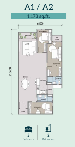 Size: 1,173 sqft