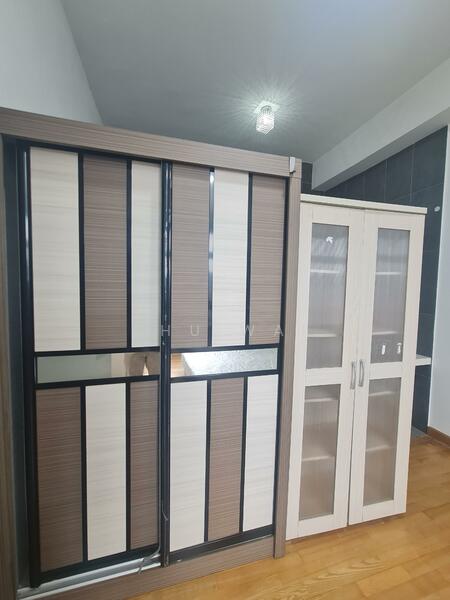 Curtain DayNight layers ,lighting,ceiling fan,Kitchen Cabinet Hob and Hood,Build In Owen,Air cond,Wardrobe, Bed frame with mattress,make up table,fridge,Washer 2 in 1,