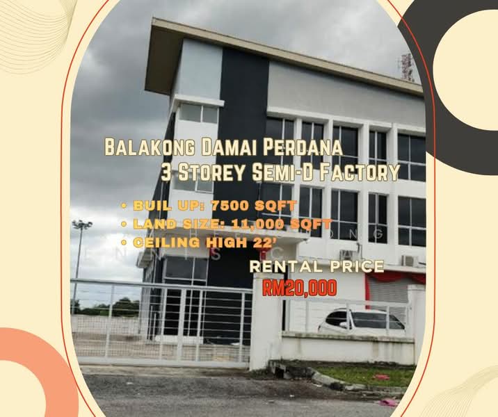 Balakong Cheras Damai Perdana Warehouse @ Detached Semi-D Factory For Rent