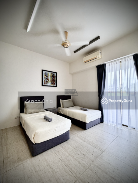 Features include large glass openings, an expansive balcony, an open kitchen, two spacious bedrooms, and two bathrooms. Fully furnished and move-in ready, it comes with one parking bay.