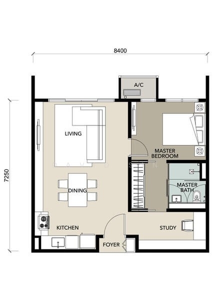 5) 1 bedroom, 1 study-room, 1 bathroom & 2 carpark