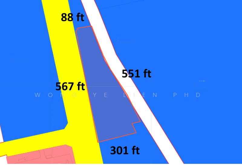 Land Dimension : 567 ft x 88 ft x 551 ft x 301 ft