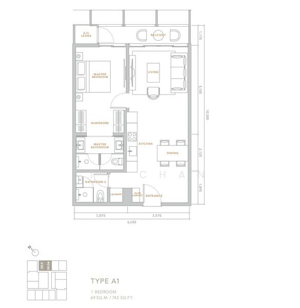 1+1Room -743sq.ft//69sqm/20.8ping