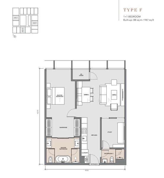 1+1Room -947sq.ft//88sqm/26.6ping (RM2.20-2.77mil) Rent Rm7.5k+