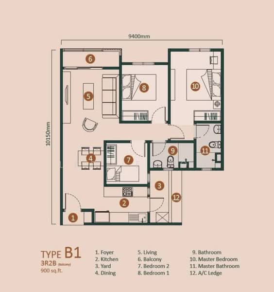 Size : 900 sqft