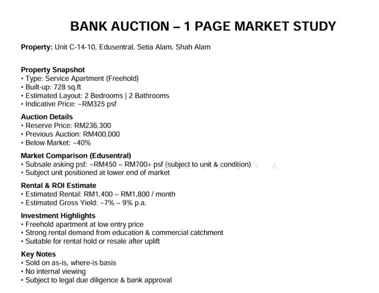 Bawah Nilai Pasaran. Lelongan Bank Edusentral Setia Alam Shah Alam.