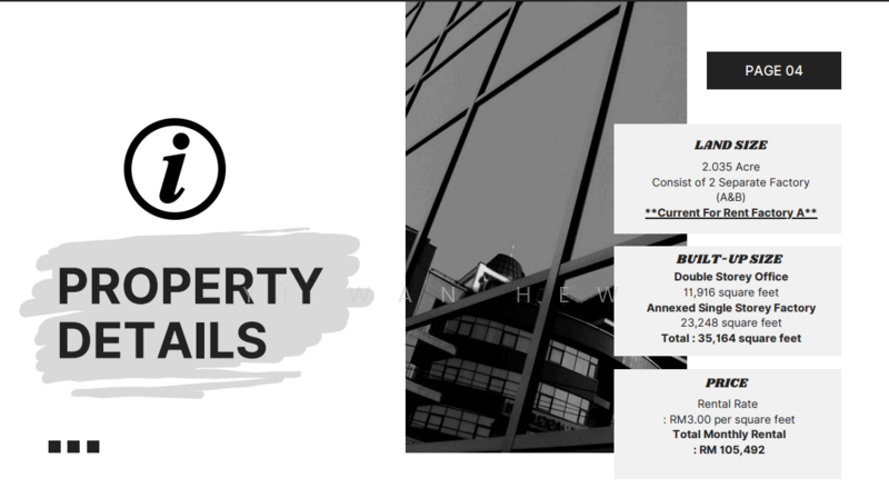 Double Sty Office , Annexed Single Storey Factory for Rent Rm105,492