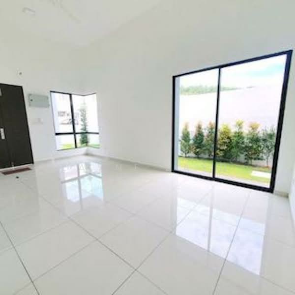 Perched on an elevated corner plot, this single-storey cluster home boasts exceptional natural lighting, improved cross-ventilation, and a scenic outlook that many other units cannot provide. The residence includes impressive high ceilings throughout, expansive tinted glass panels, a spacious covered driveway accommodating several vehicles, and a private side lawn — practical features that enhance livability and curb appeal.