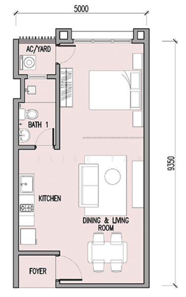 - Studio with 1 bathroom