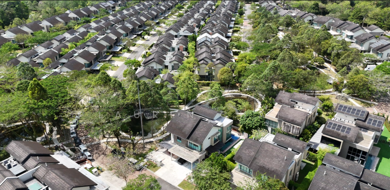 FREEHOLD international-lot bungalow set within lush greenery and gated security. Corner position beside park & pond, generous land size, family-designed pool, and a practical layout ideal for multi-generation living.
