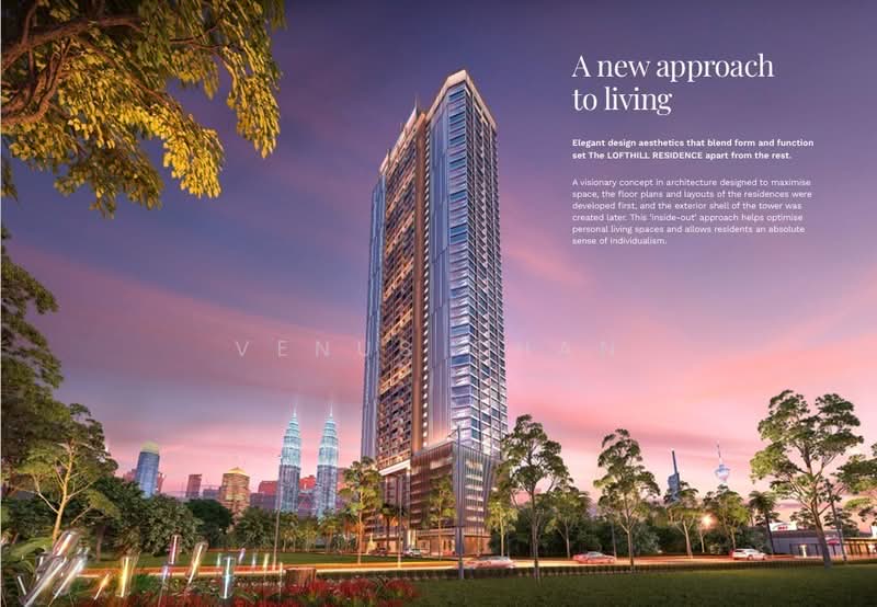 Lofthill Residence is a high-end, freehold serviced apartment located on Jalan Raja Uda, offering a new standard of luxury living in the vibrant heart of Kuala Lumpur. Developed by Armani Group and expected to be completed in 2028, this project combines sophisticated design, a strategic location, and world-class amenities catered to discerning urbanites. It consists of a single 51-storey tower with 653 units. The development introduces an innovative "inside-out" architectural philosophy, which prioritizes the optimization of internal living spaces for maximum functionality and comfort before designing the exterior. Many units feature private jacuzzis on the balcony, offering stunning, unblocked views of the KLCC skyline. The residence offers a variety of layouts, including dual-key options, designed to provide flexibility for families and investors. Lofthill Residence features fully furnished units with built-up areas ranging from 610 sq. ft. to 1,917 sq. ft. The development is designed to cater to various lifestyle needs with 11 different layouts. 610 sq. ft. (2 Bedrooms, 1 Bathroom) 721 sq. ft. (2 Bedrooms, 1 Bathroom) 807 sq. ft. (2 Bedrooms, 2 Bathrooms) 742 sq. ft. (2 Bedrooms, 1 Bathroom) 987 sq. ft. (2 Bedrooms, 2 Bathrooms) 805 sq. ft. (2 Bedrooms, 1 Bathroom) 1050 sq. ft. (2 Bedrooms, 2 Bathrooms) Residents have access to a comprehensive suite of sky facilities designed for a luxurious lifestyle. Sky Pool & Wading Pool The highest and longest sky pool in Kuala Lumpur at 118 meters Sky Gym & Sky Terrace Sauna & Jacuzzi Kids Playground & Landscaped Gardens Multi-purpose Hall & Surau 24-Hour Security Strategically located just 50-60 meters from the Raja Uda MRT station, providing seamless access across the city. Conveniently accessible via major routes like Jalan Tun Razak and the Duta-Ulu Klang Expressway (DUKE). A 45-minute drive to Kuala Lumpur International Airport (KLIA). Lofthill Residence is a short distance from Kuala Lumpur's premier shopping and entertainment districts. Suria KLCC Pavilion Kuala Lumpur Lot 10 Shopping Centre The TRX Exchange Bukit Bintang (14-minute drive) The development is located near several top-tier medical facilities. Hospital Kuala Lumpur Prince Court Medical Centre Gleneagles Kuala Lumpur Lofthill Residence is a landmark project by the Armani Group, a developer known for successful luxury projects in Kuala Lumpur. The development is also associated with Lofthill Development Sdn. Bhd. and TRE Towers.