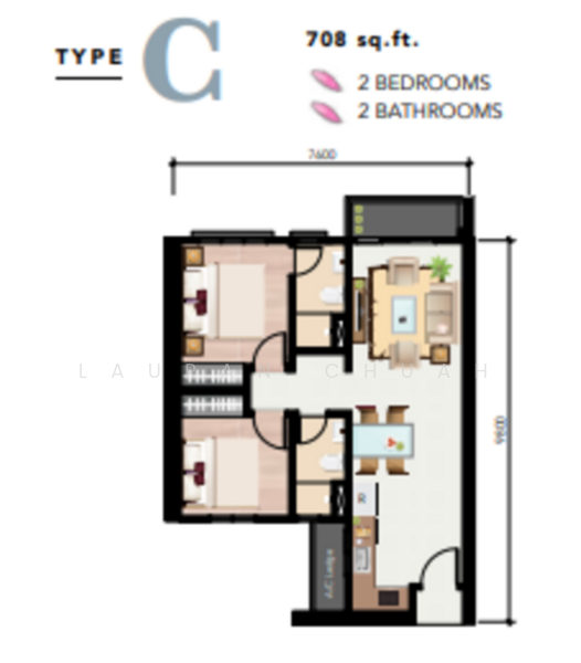 2 room 2 bathroom 2 carpark with kitchen, dining hall and living hall.