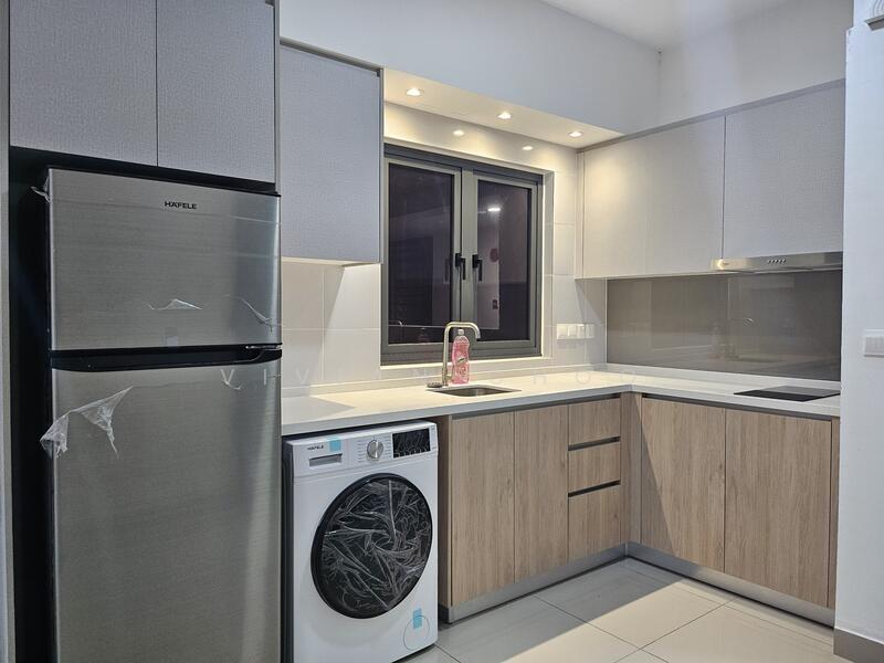 Renovated: lighting, fan, kitchen cabinet, wardrobe, cooker hood and hod, fridge and washer dryer, curtain, TV console.
