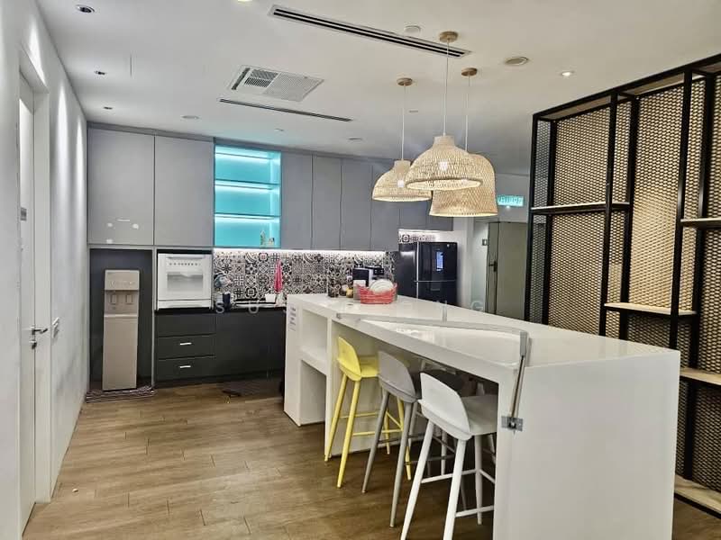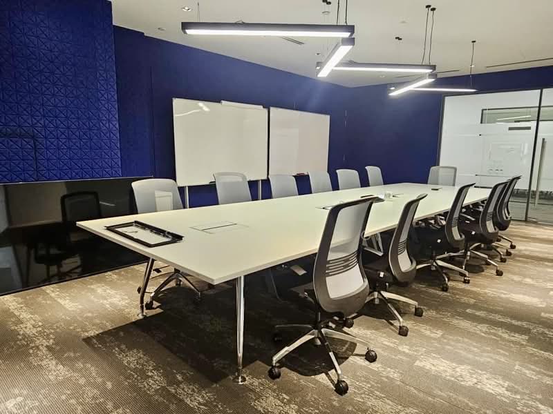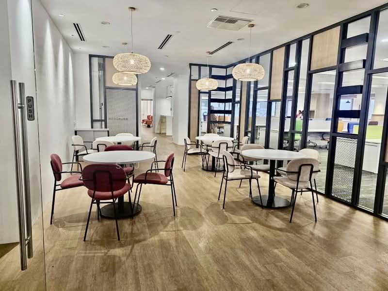 Part fitted with reception area, 3 meeting room 6-12 pax, 8 manager rooms. 170 workstations, 3 discussion room, 3 pantry area and prayer rooms