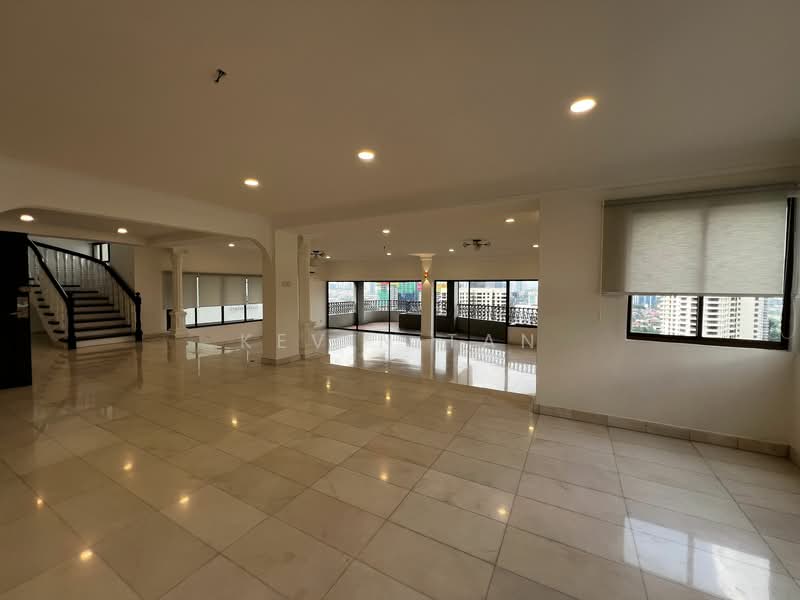 This spacious penthouse sits on one of the highest points in Bangsar, offering spectacular views of the neighbourhood. Beautiful marble flooring in living and dining rooms, polished hardwood flooring in all bedrooms.