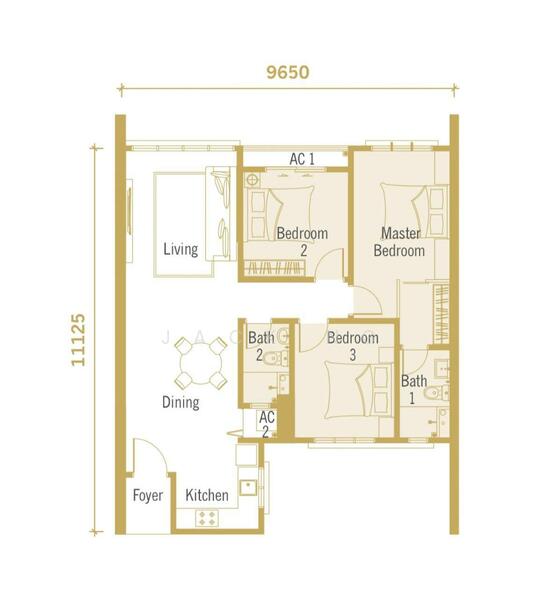 ➤ Built Up 面积:996 sqft