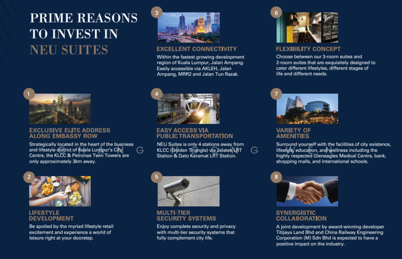Neu Suites is a freehold serviced residence located at Jalan Nipah, Kuala Lumpur. It is developed by Titijaya Land Berhad. It completed in 2021. The design of the building, layouts of the units and space of the units is ideal for everyone. Neu Suites is located in a place where all the facilities of daily life are easily available. Hospitals of the area, supermall, post office, restaurants, malls and place of worship are just few minutes walking distances away from Neu Suites. Neu Suites is full of amenities such as; Business Centre, Gymnasium room, Jacuzzi, Multi-purpose hall, Reflexology Path, Sauna, 24 hours security, Sky Lounge, Swimming pool, and Aeroyoga Room. Space in Neu Suites is available as per demand of people. Neu Suites is the preferred choice of everyone due to various reasons. First of all, the design of the building, layouts of the units and space of the units is ideal for everyone. Every unit has its own wide terrace to enjoy the fresh breeze and absorb the required sunshine. Furthermore, Neu Suites is with a split living and dining area, which makes it easier to manage in case of split living and big families. All of these facilities are further enhanced by the peaceful and quiet environment of the house and area. Moreover, the building has quite a wide car parking space which makes life easier for vehicle owners as they can easily park and access their vehicles. There is a business centre too to give more comfort to people. Gymnasium room for people who want to stay fit. There is also a Jacuzzi to keep please fresh and a reflexology path too. Lastly, the building has its own 24 hours security system which makes living here peaceful and safe. Neu Suites is located in a place where all the facilities of daily life are easily available. Famous schools in the area such as; Kizsport & Gym, SK (2) Kuala Ampang, SK Kuala Ampang 2 and Libyan School Kl are 4 to 6 minutes walking distance away, while there are 16 more schools nearby. Pharmacy of the area such as; Guardian, and Watsons and 2 more hospitals are few minutes walking distance away. Supermall Gold Storage is 4 minutes away. Banks Ambank, OCBC ATM Machine, and CIMB ATM are 4 minutes away, while 7 more schools are short away from the building. Post office Police Housing AU1 Taman Keramat is short away. Different parks and gyms such as NW Fountain, Jelatek Public City Park, Raintree Club and The Edge Of U Thant are short distance away. Restaurants The Edge Of U Thant, YaHala Restaurant – Ampang and Shyet-li's Kopitiam are 3 to 4 minutes walking distance away, while 16 other restaurants are short drive away from the building. Different malls such as; Empire 99, Souvenir Luar Negara, Flea Market 108 Jalan Ampang, Great Eastern Mall, and 8 more malls are short away. Place of worship OMF International (Malaysia) is 2 minutes and The Church of Jesus Christ of Latter-Day Saints (KL) is 8 minutes walking distance away from Neu Suites. Neu Suites has a lot amenities like Business Centre, Gymnasium room, Jacuzzi, Multi-purpose hall, Reflexology Path, Sauna, 24 hours security, Sky Lounge, Swimming pool, and Aeroyoga Room. Neu Suites is a very attractive building. It is developed by Titijaya Land Berhad. It completed in 2021. The interior and exterior design of the building is very beautiful and attractive. The use of glass, wood, and metal are wisely. Titijaya Land Berhad is the developer behind Neu Suites. The vision of the developer is to provide the amazing experience of skyscraper residential unit coupled with all the modern life faciitlies. The minimum price in the area is RM 343 Psf and the median price is RM 459 Psf. This particular area is famous for amazing residential projects. Hence one should check other residential projects in the same area like 1 Razak Mansion, 10 Stonor, 183 Ampang, 188 Suites (Fraser Residence), 1A Stonor and 2 Hampshire.