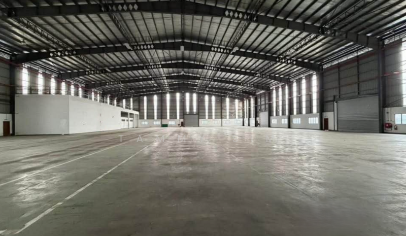 Expansive factory with ample land for sale. Location: Negeri Sembilan, Nilai. Total land area: 210,000 square feet (4.6 acres). Built-up area: 78,000 square feet. Height: 50 feet. Generous open space available for warehouse, factory, or production line expansion, suitable for truck access and parking. Conveniently located near main roads and highways, providing easy entry and exit. Facilities include multiple office levels, employee canteen, guardhouse, and more.