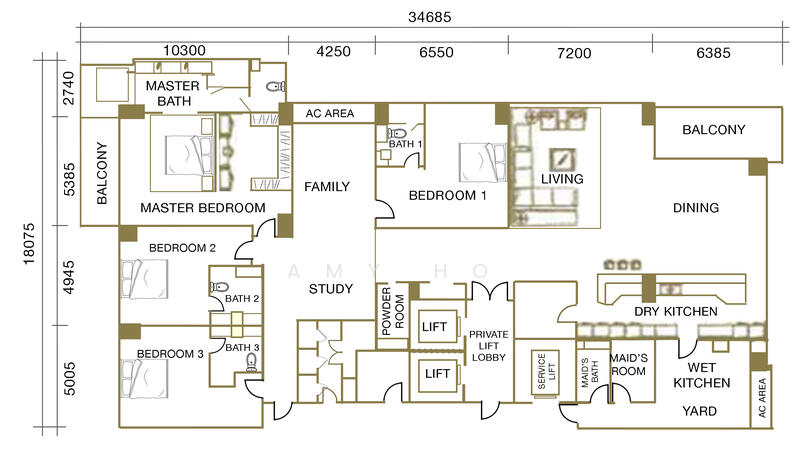 Layout : 4+1 Rooms + 1 Study | 4+1 Bathrooms | 1 Powder Room