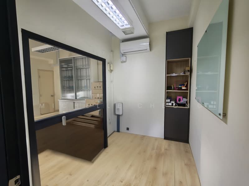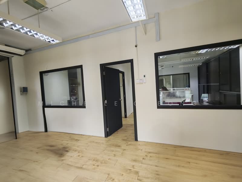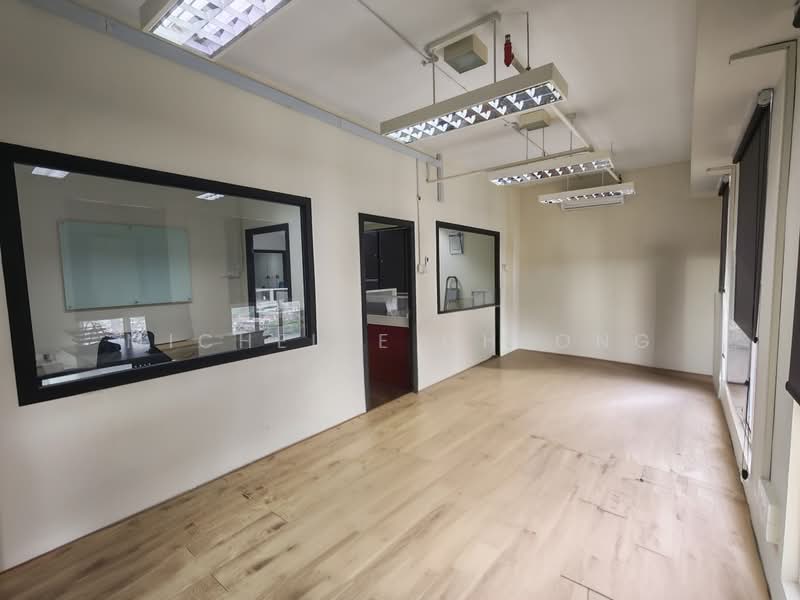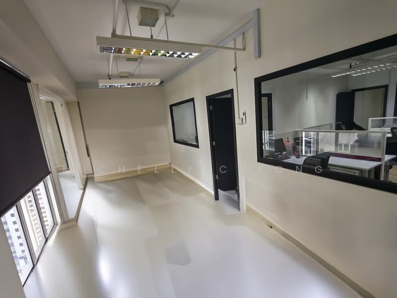 Situated on a high floor, this office space faces south and features a partially fitted layout. It includes 1 meeting room, 1 storage room, and a pantry area. The flooring is made of SPC wooden material, and built-in cabinets are provided for organization. Monthly rent is rm3200.