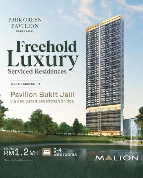 Park Green is the final and most prestigious residential phase within the iconic 50-acre, freehold Bukit Jalil City township in Kuala Lumpur. Developed by the renowned Malton Berhad, this serviced residence is designed as an urban sanctuary that blends luxury living, modern conveniences, and natural serenity. As a GreenRE-certified property, Park Green incorporates sustainable features like natural cross-ventilation, energy-efficient air-conditioning, and rainwater harvesting systems. This low-density development consists of two 47-storey towers with a total of only 453 units, ensuring privacy and exclusivity for its residents. The project, with an expected completion in 2028 or 2029, offers премиум concierge services and a comprehensive suite of facilities spread across two levels—the Podium at Level 11 and a Sky Deck at Level 47. Key facilities include:Infinity Pool & Bubbly Jacuzzi Co-working Lounge & Social Garden Flex Fitness Zone & Yoga Flow Room Sky Lounge & Executive Dining EV Charging Stations Kindergarten (Space Only) Park Green offers a range of family-sized layouts from 1,201 to 1,905 sq. ft., featuring 3 to 4-bedroom configurations. These homes are designed with semi-D and sky semi-D concepts, providing practical layouts that include both wet and dry kitchens and balconies with panoramic views of either the 80-acre Bukit Jalil Recreational Park or Pavilion Bukit Jalil. Units come partially furnished with essentials like kitchen cabinets, air-conditioners, and digital locksets. 1,201 sq ft (3 Bedrooms, 2 Bathrooms) 1,408 sq ft (3 Bedrooms, 2 Bathrooms) 1,485 sq ft (3 Bedrooms, 2 Bathrooms) 1,501 sq ft (3 Bedrooms, 2 Bathrooms) 1,905 sq ft (4 Bedrooms, 3 Bathrooms) 1,627 sq ft (3 Bedrooms, 2 Bathrooms) A key feature of Park Green is its direct connection to the award-winning Pavilion Bukit Jalil mall via a dedicated pedestrian bridge, placing world-class retail, dining, and entertainment just 50 meters away. The development is also located adjacent to the 80-acre Bukit Jalil Recreational Park (350m away), offering residents easy access to lush green spaces for outdoor activities. The residence is situated near several reputable educational institutions. SJK(C) Lai Meng is just 1 km away, while the Tzu Chi International School, International Medical University (IMU), and Asia Pacific University (APU) are also in close proximity. Residents have access to nearby medical facilities, including IMU Healthcare and Columbia Asia Hospital – Bukit Jalil, both located about 3.5 km away. Park Green offers excellent connectivity via major highways such as the Bukit Jalil Highway, MEX, and KESAS. For public transportation, the Awan Besar LRT station is located 500m away via a bridged connection, and a free shuttle service is also available. Park Green Pavilion Bukit Jalil is a project by Malton Berhad, the master developer of the entire Bukit Jalil City township, known for its portfolio of successful integrated developments.