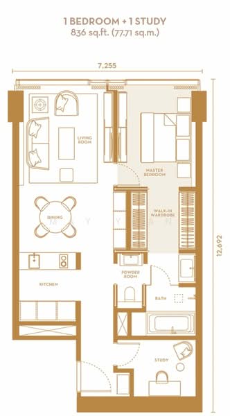 - 1 + 1 bedrooms, built up 836sf