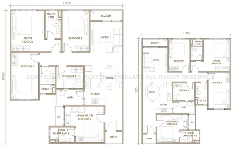 Type C (1310 Sqft 5Room 2 Bath) Price from 606K