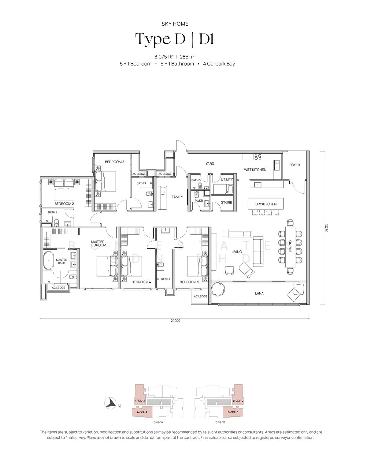 * Generous built-ups up to 3,075 sq. ft., 5-bedroom layout.