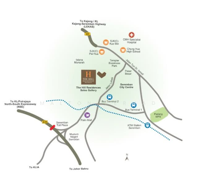Nestled within a low-density and serene enclave, The Hill Residences stands proudly in the heart of Seremban town. Surrounded by mature conveniences—schools, hospitals, banks, and public transport—residents enjoy a well-connected and stress-free lifestyle. Direct access to Kuala Lumpur City Centre via LEKAS and the North–South Expressway ensures smooth daily commutes.