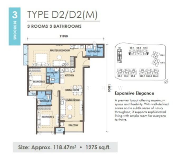 3 Bedrooms 3 Bathrooms | 1,275 sqft | From RM1.xxM