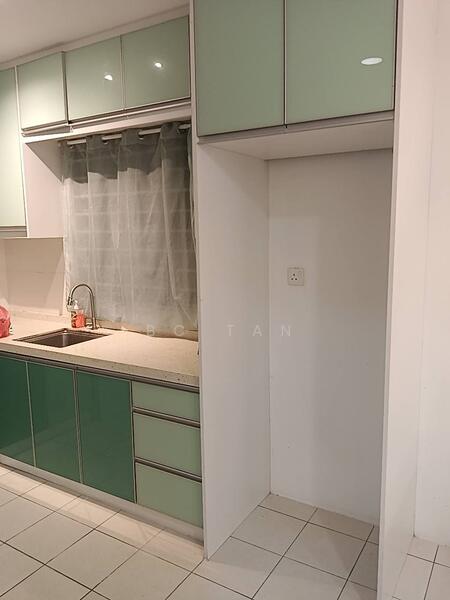 - wardrobe, kitchen tabletop, TV console, kitchen cabinet, ceiling fan.
