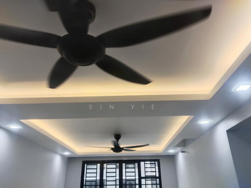 1.Fan, lamp, kitchen cabinet, grill door