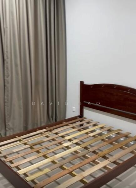 fully furnished with bed frames, cupboards, curtains, and fans in each room.