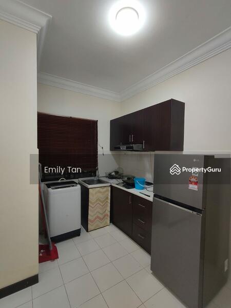 Well maintain, ready move in condition. Fully furnished with air cond, lighting, ceiling fan, bed set, fridge, washer, built in kitchen cabinet, hood, induction cooker, wardrobe, dining set, heater, curtains etc