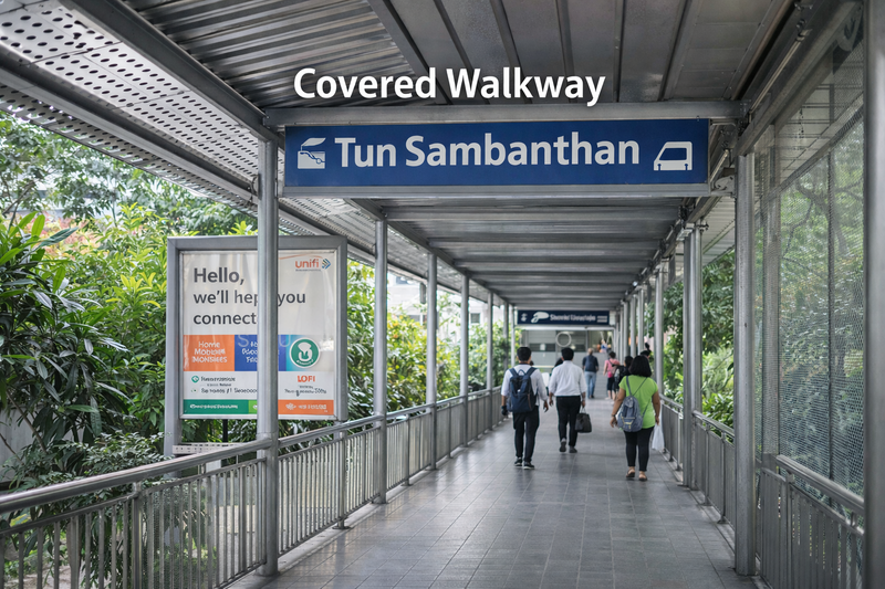 • ≈100m to Tun Sambanthan Monorail (Covered Walkway)