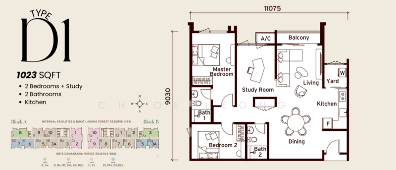 Type B | 1,023 sf 2+1 Room 2 Bath