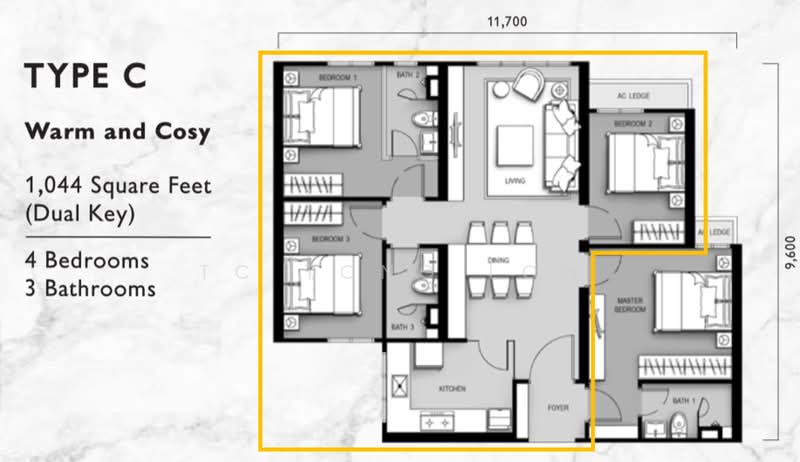 Built-up: 1044 sqft (Dual Key Type C)