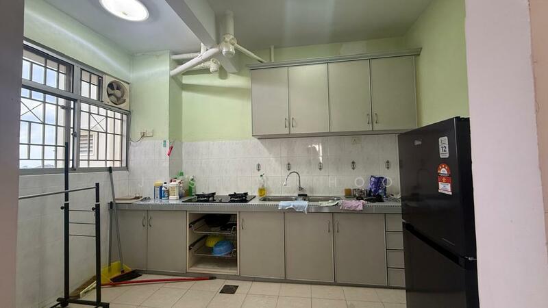 With fridge, washing machine and kitchen cabinet