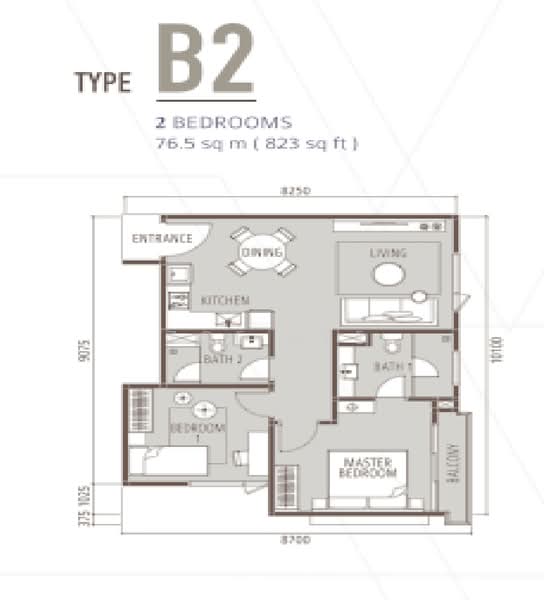 Type B2 ( 823 Sqft )