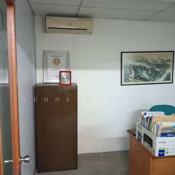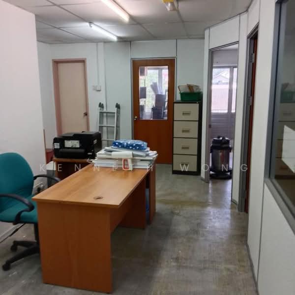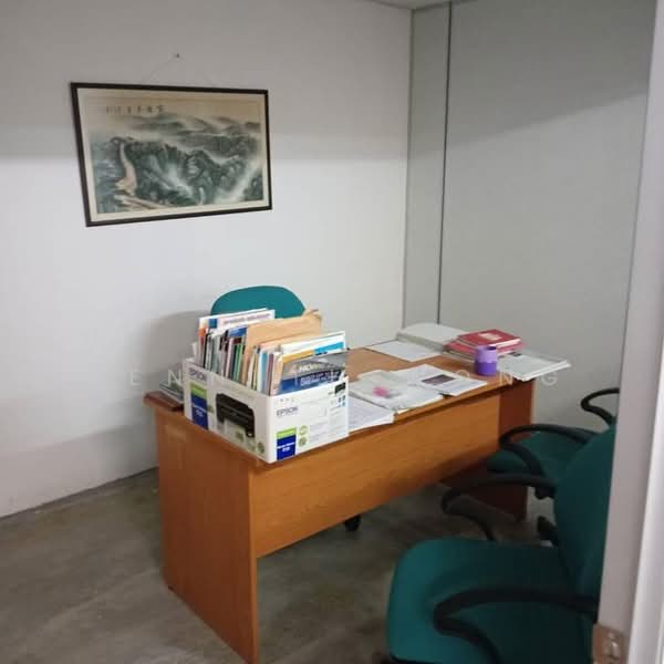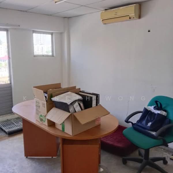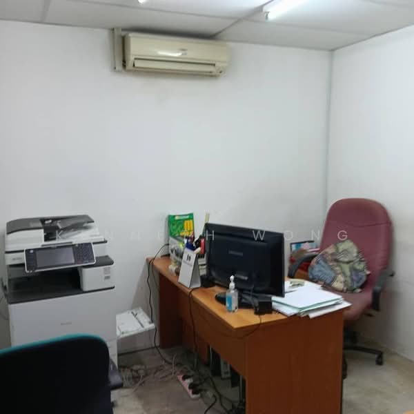 ). This renovated office features partitions, consisting of 3 rooms and 4 air conditioning units, along with laminated flooring and integrated lighting. The area experiences heavy foot and vehicle traffic. You'll find numerous eateries, convenience stores, and retail outlets nearby, including Asian Mixed Rice, Restaurant Sun Yin Loong, Sunwaymas Noodle, Restaurant 747, Syed Abu Mamak Restaurant, Ah San Bak Kut Teh,