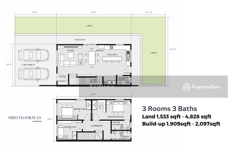 • Bigger Size (1,909sf) & Bigger Land (1,533sf) compare to surrounding house