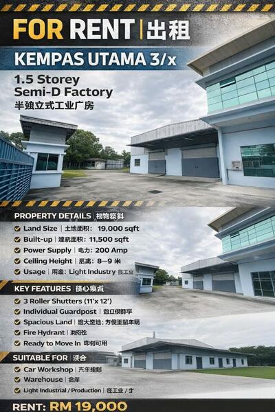 Kempas Utama 1.5 Storey Semi-D Factory 81200 Johor Bahru, Johor