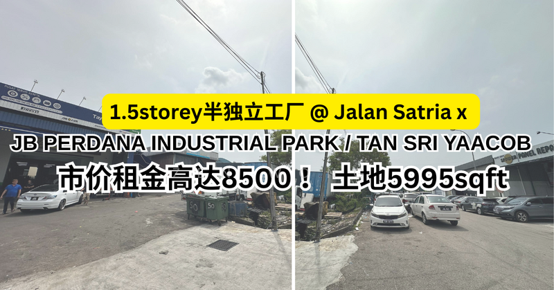Tan Sri Yaacob/ Nusa Bestari 附近的1.5层半独立厂 @ JB Perdana Industrial Park, Skudai. 现成租金6500 但市价高达8500了 ! roi 回酬可高达4% ! 50x120ft
