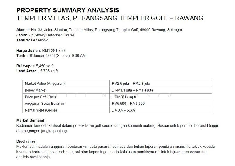 Address: No. 33, Jalan Siantan, Templer Villas, Rawang
