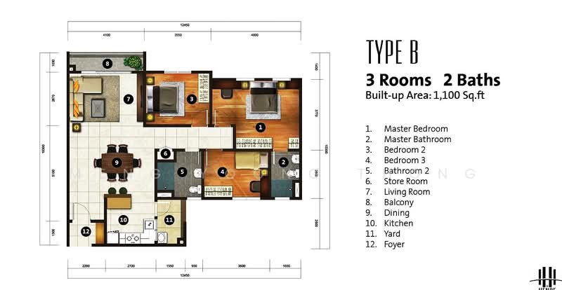 - 1,100 sq ft