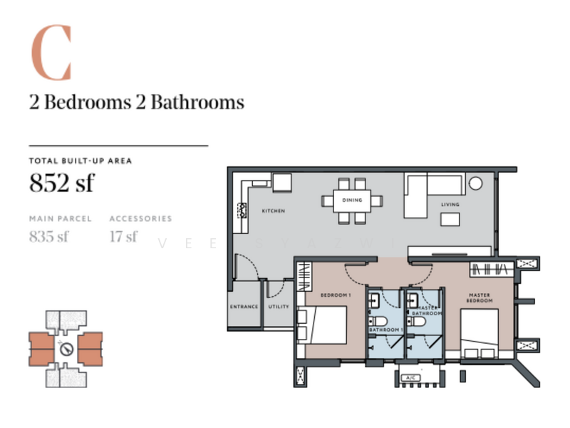 -852sf (2bed/2bath)