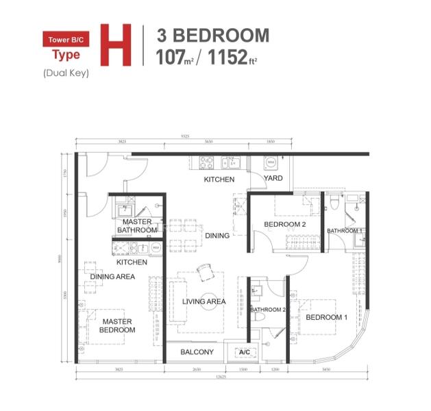 Medini Macrolink dual key three bedroom unit, ideal for investment