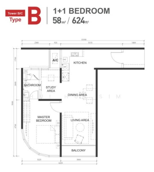 624 sqft | 1+1 Bedroom | 1 Bathroom