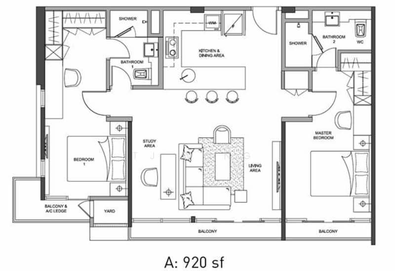 - 920sqft 2 Rooms 2 Baths Corner