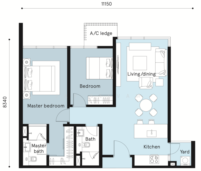 The unit comes equipped with 3 air-conditioners (living room, master bedroom and second bedroom), water heater, washing machine, refrigerator, and kitchen cabinets, suitable for own stay or investment.
